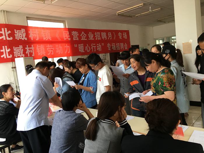 | 为促进我镇劳动力就业,北臧村社保所于2018年5月9日上午9点在北臧村镇综合行政服务中心面向就业困难、低收入人群及中环拆除腾退企业相关人员举办了“暖心行动”专场招聘会。