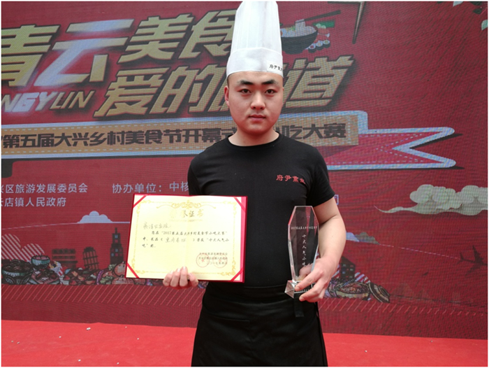 燕清农家院的”熏肉卷饼“参加第五届大兴乡村美食节暨小吃大赛,获得"十大人气小吃"奖。”熏肉卷饼“